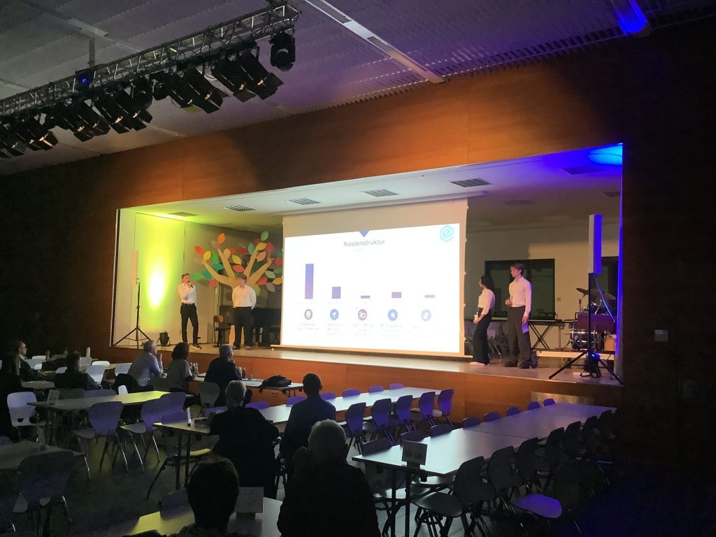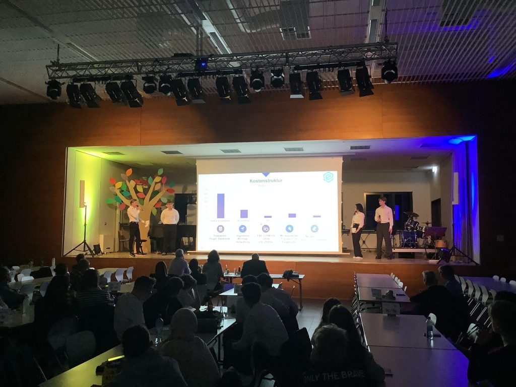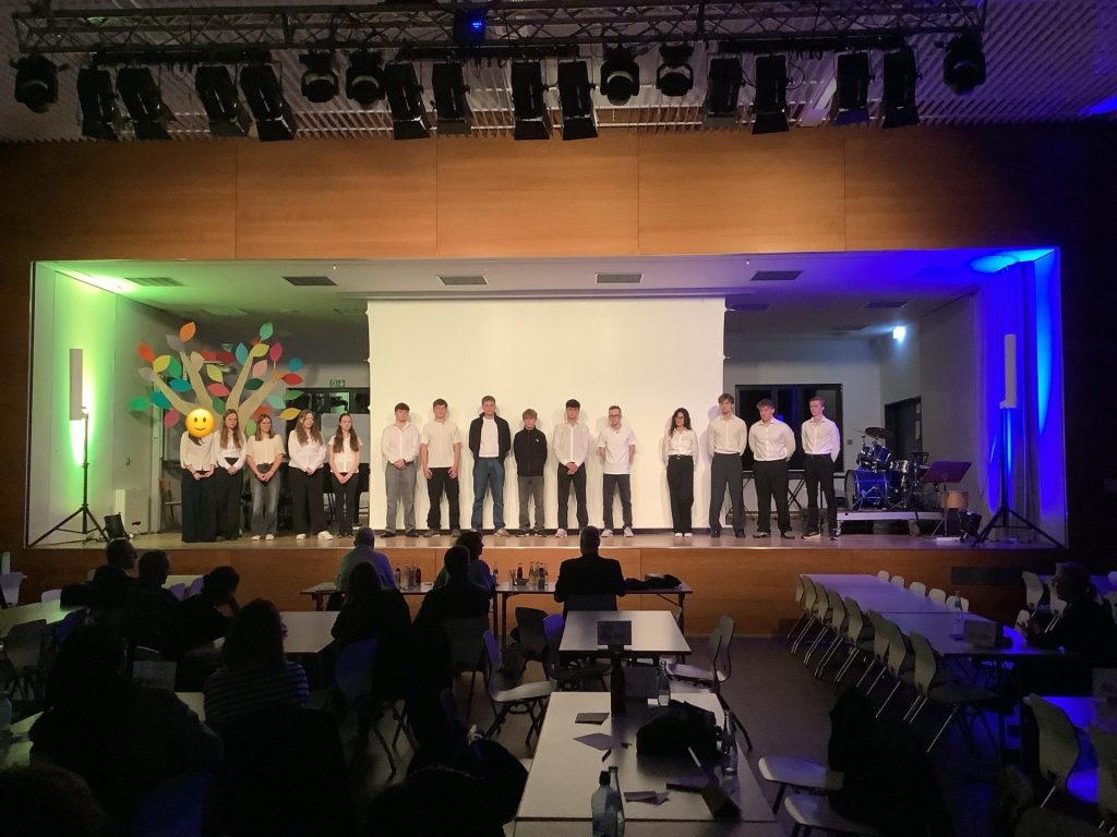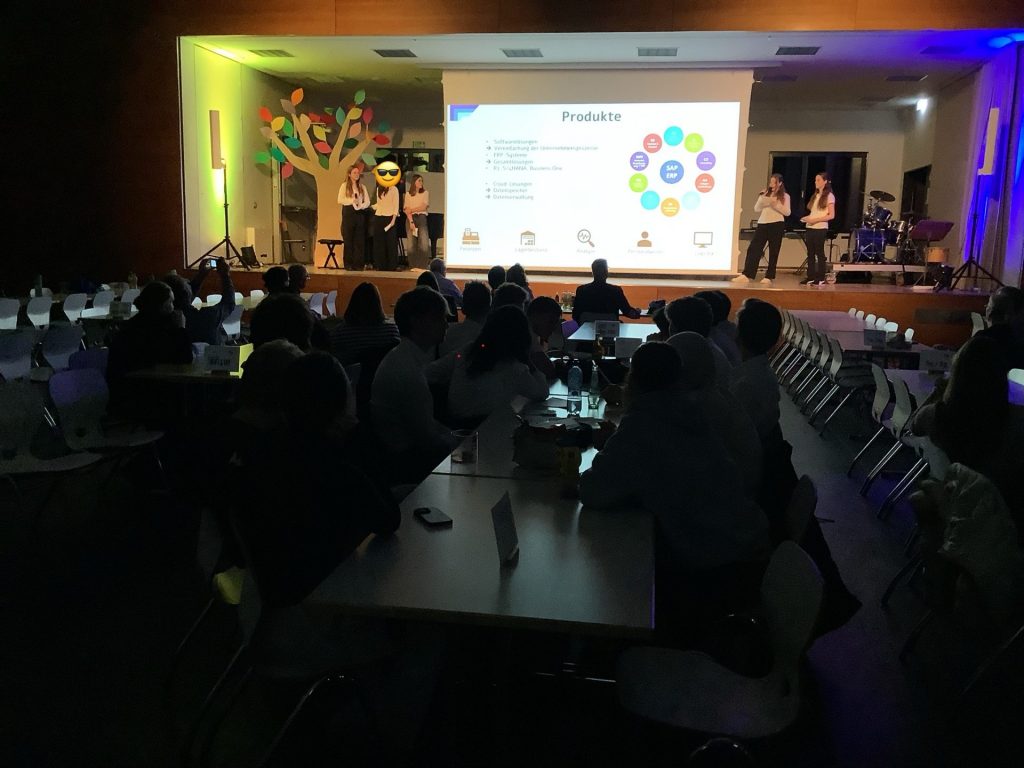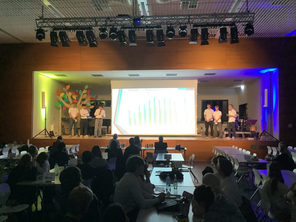 Das Team Invenimus Futuram konnte letzten Donnerstag den 1. Präsentationsabend von Business@School in diesem Schuljahr für sich entscheiden. Mit ihrer Analyse des Software-Unternehmens SAP konnten sie die Jury, bestehend aus Volker Frank vom frechener IT-Unternehmen Netable, Steuerberaterin Andrea Hamacher und Gerhard Maier von der Unternehmensberatung Peopledynamix, überzeugen. Die Plätze zwei und drei belegten die Negoti Solutions Group mit ihrer Analyse des Chemiekonzerns BASF und Team ENNOC (ENable New Opportunities & Creativity) mit ihrer Präsentation zu Flugzeughersteller Airbus.
