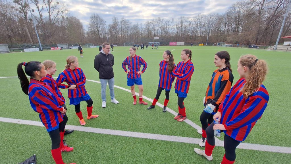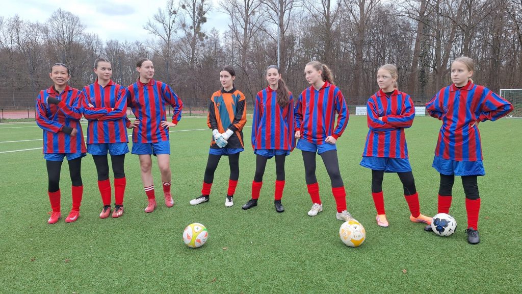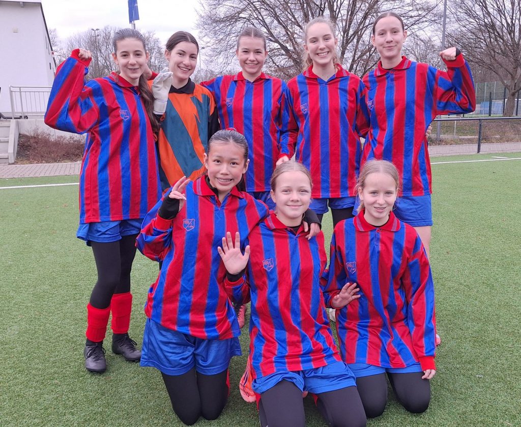 Nach anfänglicher Skepsis – sowohl gegenüber den scheinbar übermächtigen Gegnerinnen als auch gegenüber den schuleigenen „Old-School“-Trikots mit Langarm und Kragen – wuchs das Team schnell zusammen. In blau-roten Farben, nicht ganz zufällig an den FC Barcelona erinnernd, präsentierten sich die Spielerinnen als echte Einheit. Oder wie es eine begeisterte Mutter einer Gegnerin treffend formulierte: