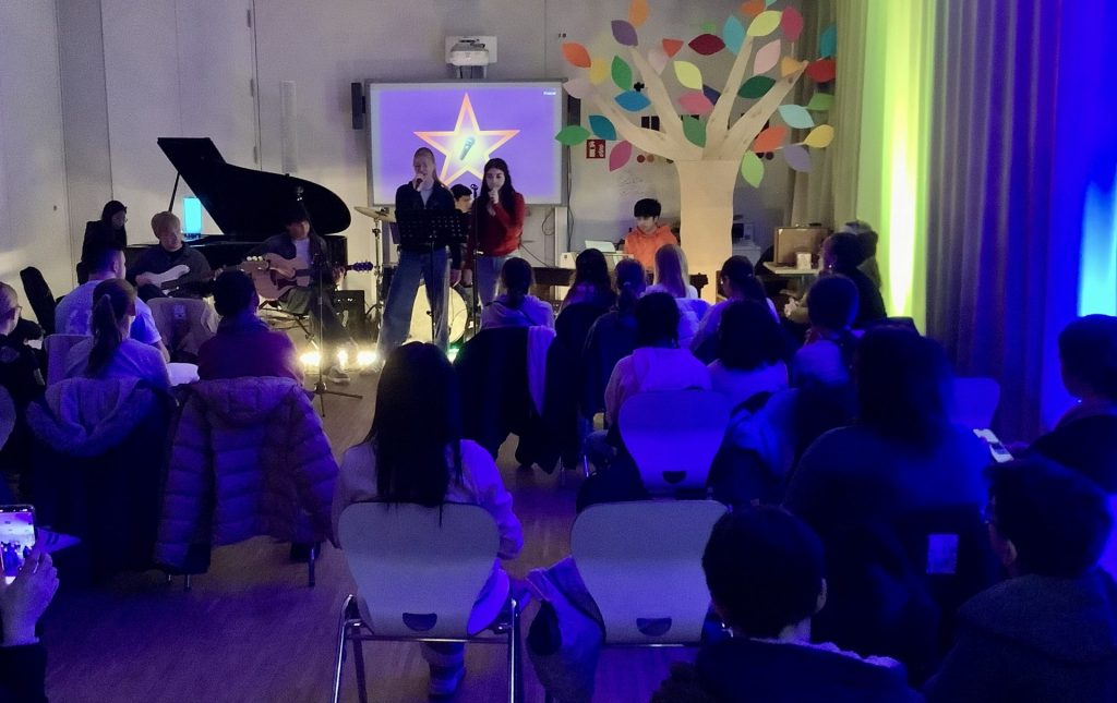 Der Abend bot eine bunte Vielfalt – viel Musik, aber auch selbst verfasste Gedichte, von Stufe 5 bis in die Oberstufe und das Erwachsenenalter, von Pop bis zu klassischer Musik. Das Publikum war begeistert und trug sehr zu einer positiven und wertschätzenden Atmosphäre bei. Ein herzliches Dankeschön an alle Auftretenden und das Publikum – wir freuen uns schon auf die nächste Ausgabe!