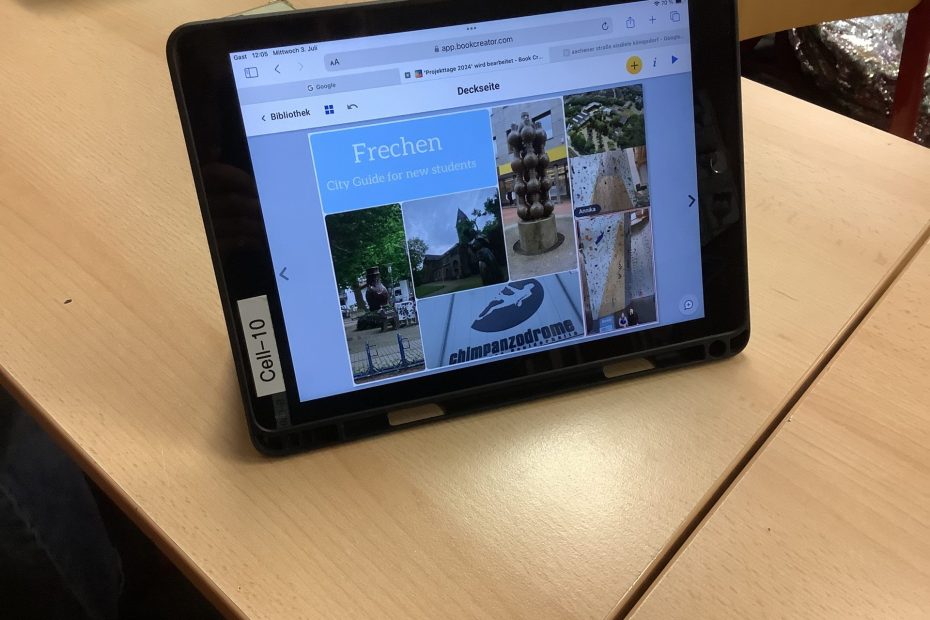 Dieses Projekt ist insbesondere für die Willkommensklasse.Interview mit Bohye (5f) und Greta (5d)…Was macht ihr hier im Projekt?Wir machen einen Stadtführer zum Thema Königsdorf. Wir schreiben es auf Deutsch und auf Englisch, damit auch Menschen aus anderen Ländern das lesen können. Außerdem schreiben wir auf, wo die Aktivitäten und Geschäfte sind , z.B. wo der Rewe in Königsdorf ist. Wie kommt ihr mit dem Thema zurecht? Eigentlich ganz gut. Macht euch das Projekt Spaß? Teilweise ja, teilweise nein. Geht es… Weiterlesen »#Projekttage2024 #25: City Guide Frechen for new students
